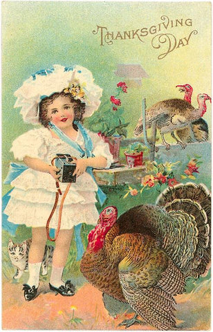 TD-18 Girl with Camera, Cat and Turkey - Vintage Image