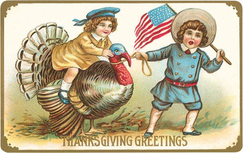 TD-49 Greetings, Children and Turkey - Vintage Image