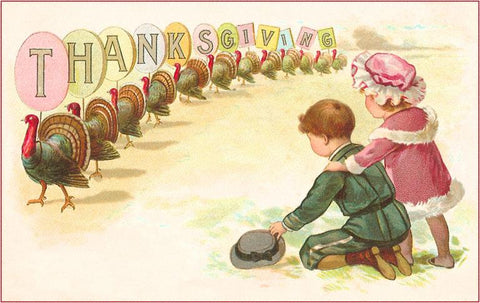 TD-53 Row of Turkeys with Letters - Vintage Image