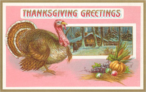 TD-57 Greetings, Turkey and Cabin - Vintage Image