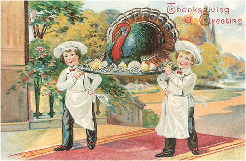 TD-74 Young Chefs Carrying Turkey on Platter - Vintage Image