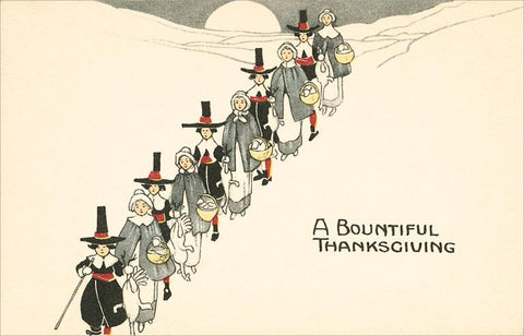 TD-106 A Bountiful Thanksgiving, Pilgrims in Snow - Vintage Image