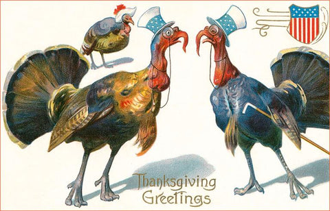 TD-127 Thanksgiving Greetings, Turkeys in Hats - Vintage Image