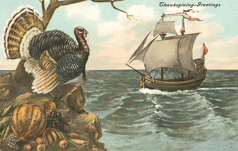 TD-133 Turkey Watching Mayflower Arrival - Vintage Image