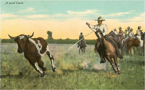 TW-06 Steer Roping on Range - Vintage Image