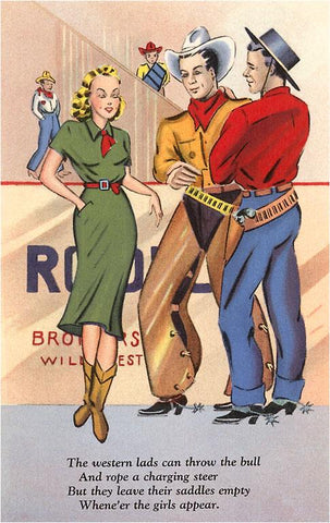 TW-53 Cowboys with Woman, Poem - Vintage Image