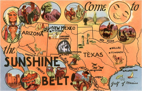 TW-54 Come to the Sunshine Belt, Map of US - Vintage Image