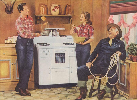 TW-130 Cowboys in Kitchen - Vintage Image