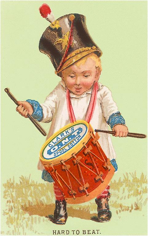 TC-98 Little Boy Drumming Spool of Thread - Vintage Image