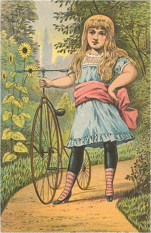 TC-49 Victorian Girl with Penny Farthing Bicycle - Vintage Image