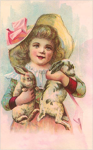 TC-101 Victorian Girl with Rabbits - Vintage Image