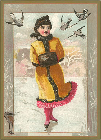 TC-114 Victorian Girl Ice Skating - Vintage Image