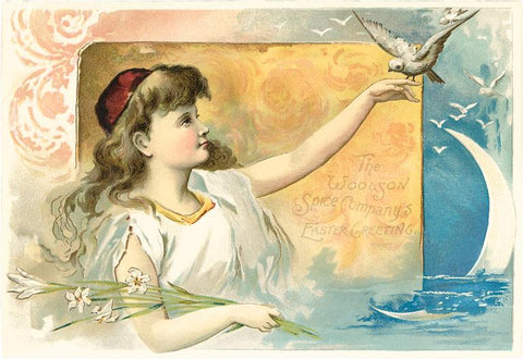 TC-123 Girl with Bird and Lilies - Vintage Image