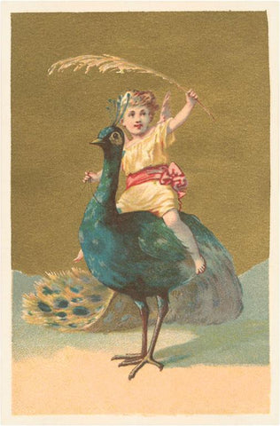 TC-140 Little Girl Riding Peacock - Vintage Image