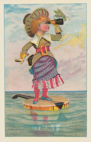 TC-146 Girl with Binoculars on Floating Banjo - Vintage Image