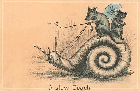 TC-225 Mice Riding Snail - Vintage Image