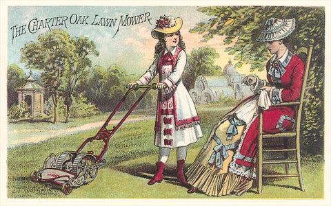 TC-274 Girl with Antique Lawnmower - Vintage Image
