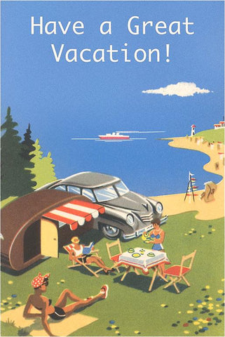 TR-21 Family Camping by Ocean, Have a Great Vacation - Vintage Image