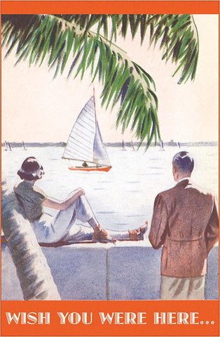 TR-25 Couple Watching Sailboat, Wish You Were Here - Vintage Image