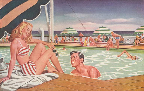 TR-231 Couple at Pool's Edge - Vintage Image