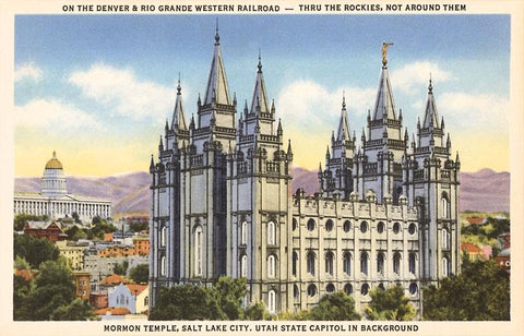 UT-64 Mormon Temple, Salt Lake City, Utah - Vintage Image