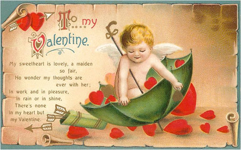 VL-07 Valentine Poem, Cupid with Umbrella - Vintage Image