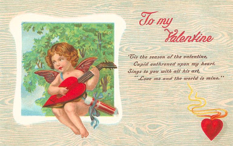 VL-16 To My Valentine, Cupid Playing Heart Mandolin - Vintage Image