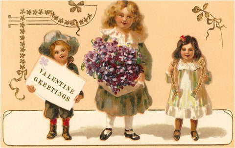 VL-20 Valentine Greetings, Victorian Children with Violets - Vintage Image