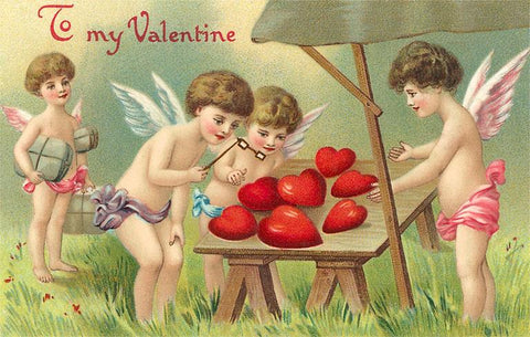 VL-25 To My Valentine, Cupids Examining Hearts - Vintage Image