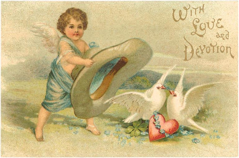 VL-27 With Love and Devotion, Cupid with Hat and Doves - Vintage Image