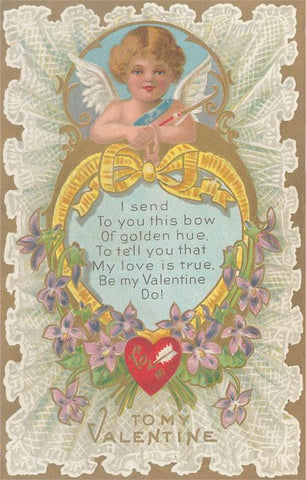 VL-29 To My Valentine, Cupid and Poem - Vintage Image