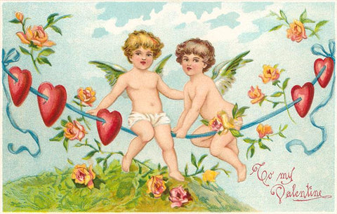 VL-38 To My Valentine, Cupids on Rope - Vintage Image