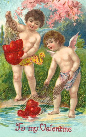 VL-52 To My Valentine, Cupids Netting Hearts - Vintage Image
