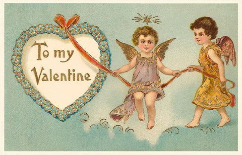 VL-55 To My Valentine, Cupids with Rope - Vintage Image