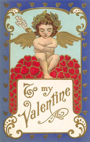 VL-56 To My Valentine, Cupid Sitting on Hearts - Vintage Image