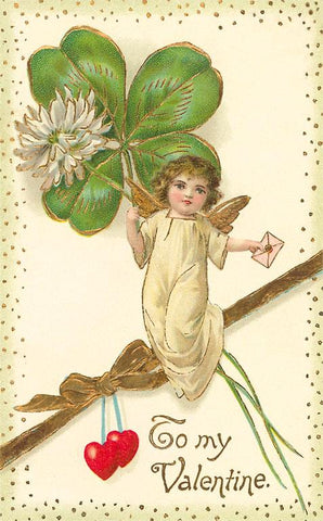 VL-59 To My Valentine, Cupid with Clover - Vintage Image