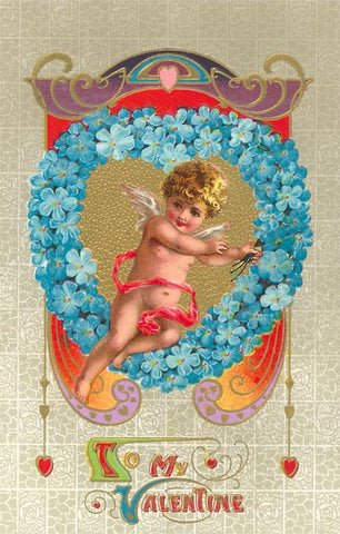VL-62 To My Valentine, Cupid in Violet Wreath - Vintage Image
