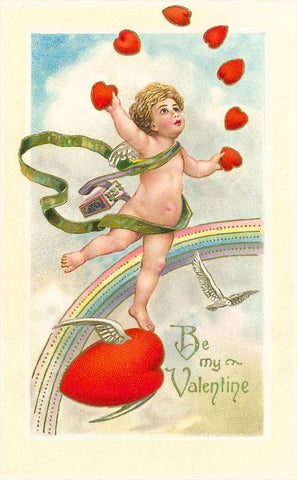 VL-63 Be My Valentine, Cupid Juggling Hearts - Vintage Image