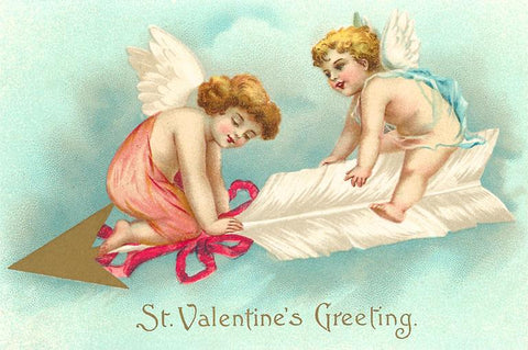 VL-70 St. Valentines Greeting, Cupids Riding Arrow - Vintage Image