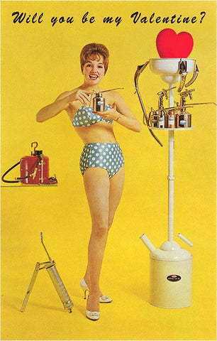 VL-104 Will You be My Valentine? Woman with Lube Equipment - Vintage Image