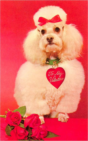 VL-107 To My Valentine, Poodle with Roses - Vintage Image