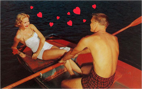 VL-112 Couple in Rowboat, Hearts - Vintage Image