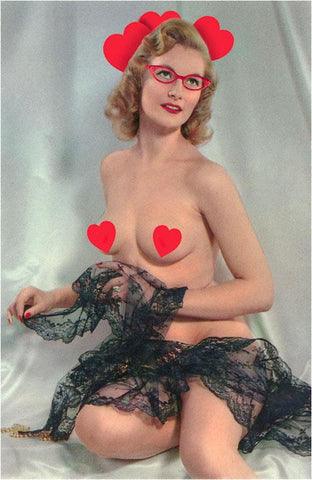 VL-136 Woman with Heart Pasties and Black Lace - Vintage Image