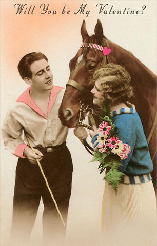 VL-158 Will You Be My Valentine? Couple with Horse - Vintage Image