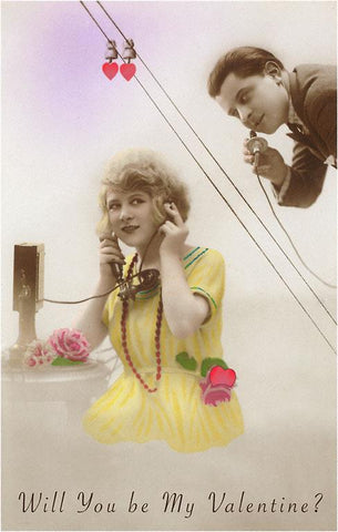 VL-164 Will You Be My Valentine? Couple on Phone - Vintage Image