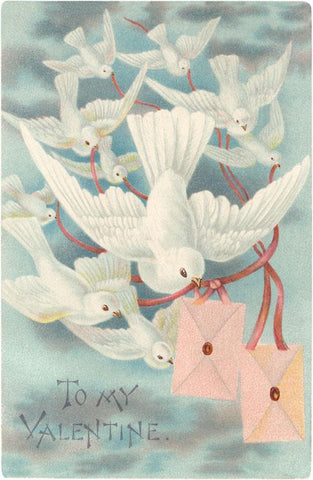 VL-179 To My Valentine, Doves with Letters - Vintage Image