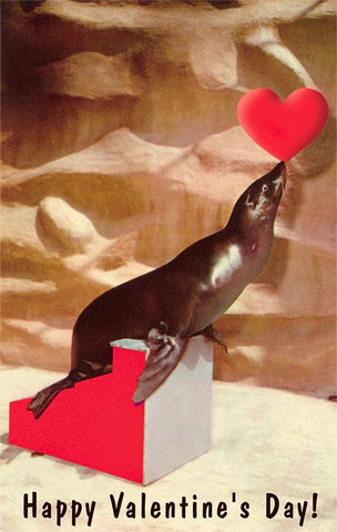 VL-203 Happy Valentines Day, Seal Balancing Heart - Vintage Image