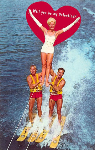 VL-208 Will You Be My Valentine? Water Skiers - Vintage Image