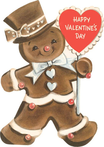 VL-241 Happy Valentines Day, Gingerbread Man - Vintage Image