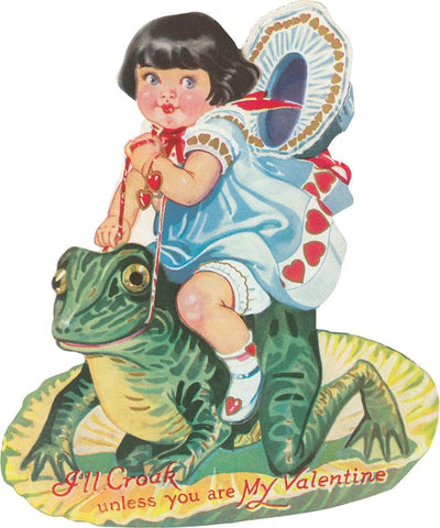 VL-244 Girl Riding Giant Frog, Valentine - Vintage Image